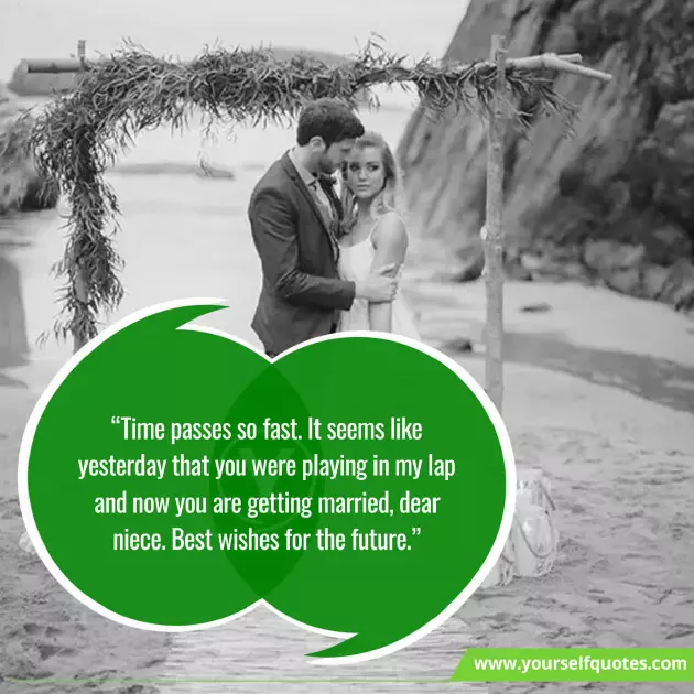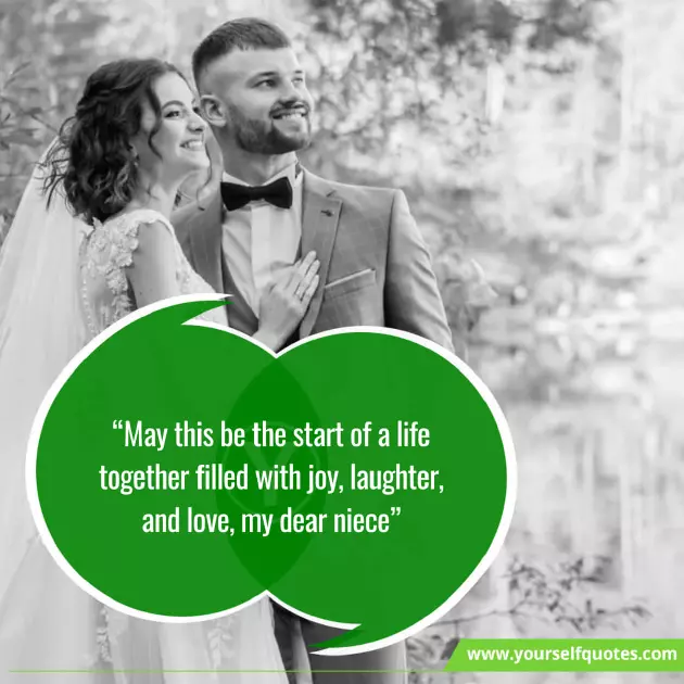 "May God give has an ideal filled with joy, laughter, and love, my dear niece"you and your have a healthy new phase of you two. Extremely happy for • "Let the wedding you join hands now you are • "Time passes so