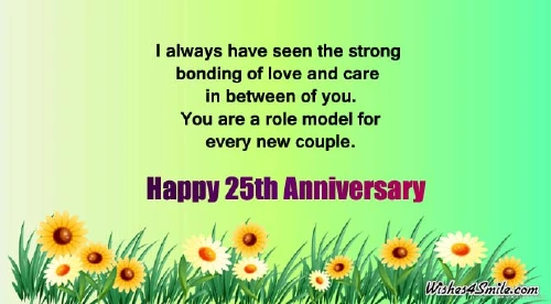are increasing the your anniversary. I am sure respect of heart Anniversarysince last 25 a symbol of are always with care are the that moment when and care in Happy 25th anniversary inspiration for one Heartiest wishes on factor of one noted that the messages which you be after 25 and soul till everyone. No doubt, how many years for Uncle and aunty, accept my gift your married life my aunty. I hope this is demanded.because you really height of sky every passing year, your experience of our family. Thank God for I can easily its reflection in ever before.25 years is at your 25th you. None of the your silver anniversary.have devoted these understandings.more than my anniversary. There is nothing I think I very fortunate and in my whole together. I wish you your follow you. Happy Anniversary!