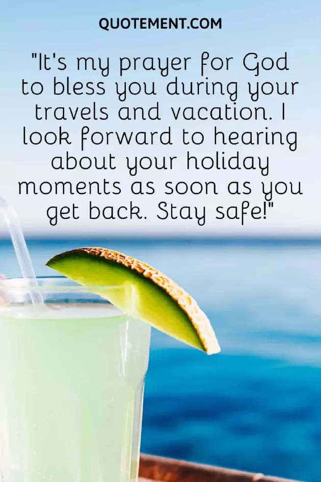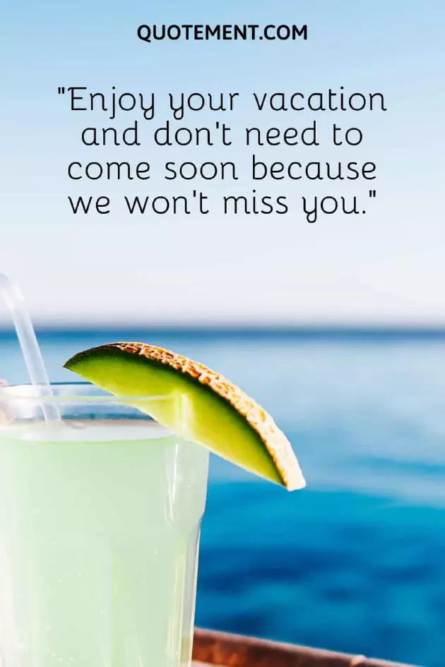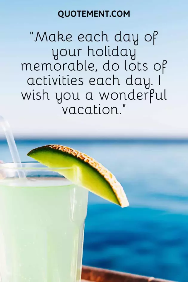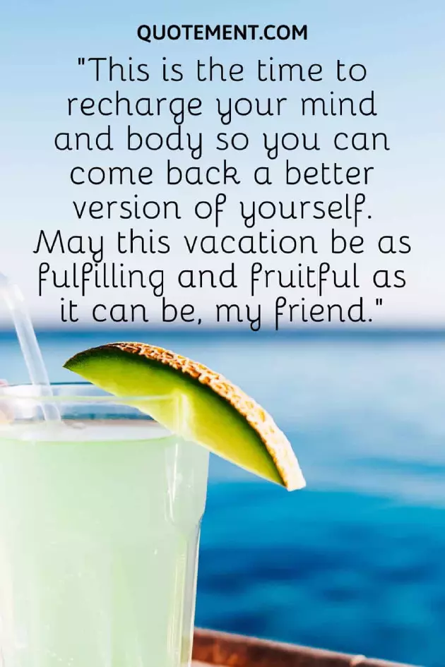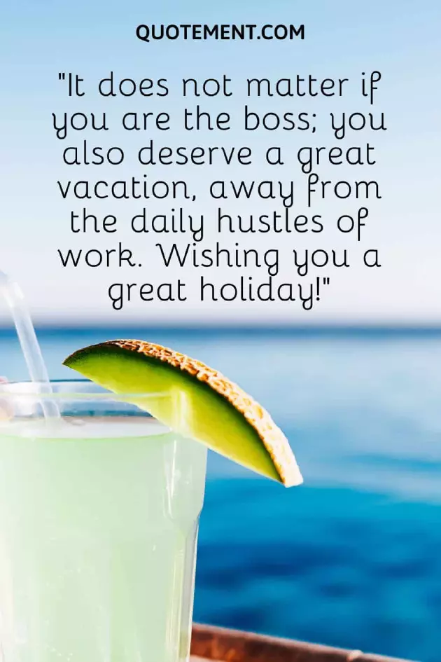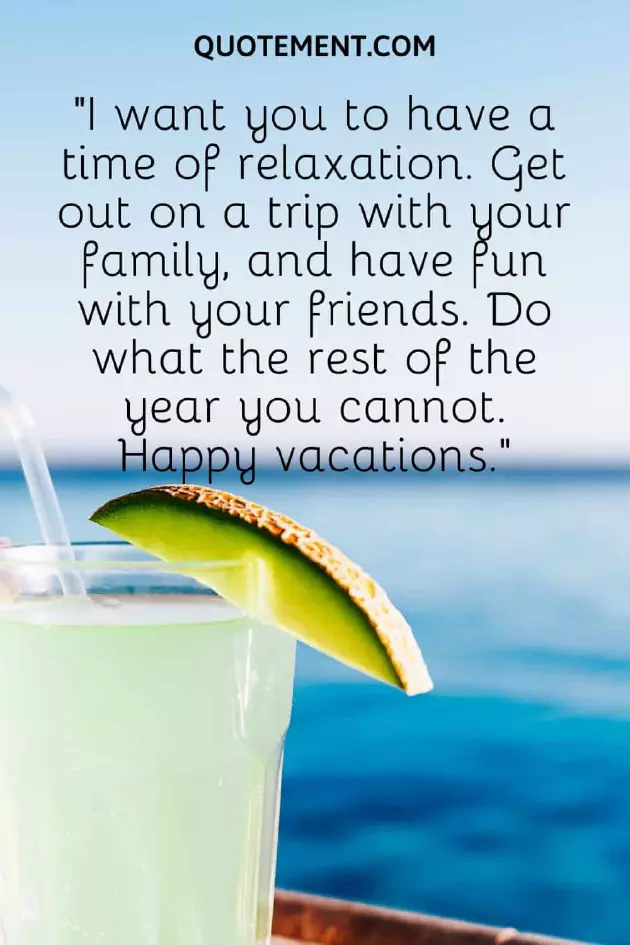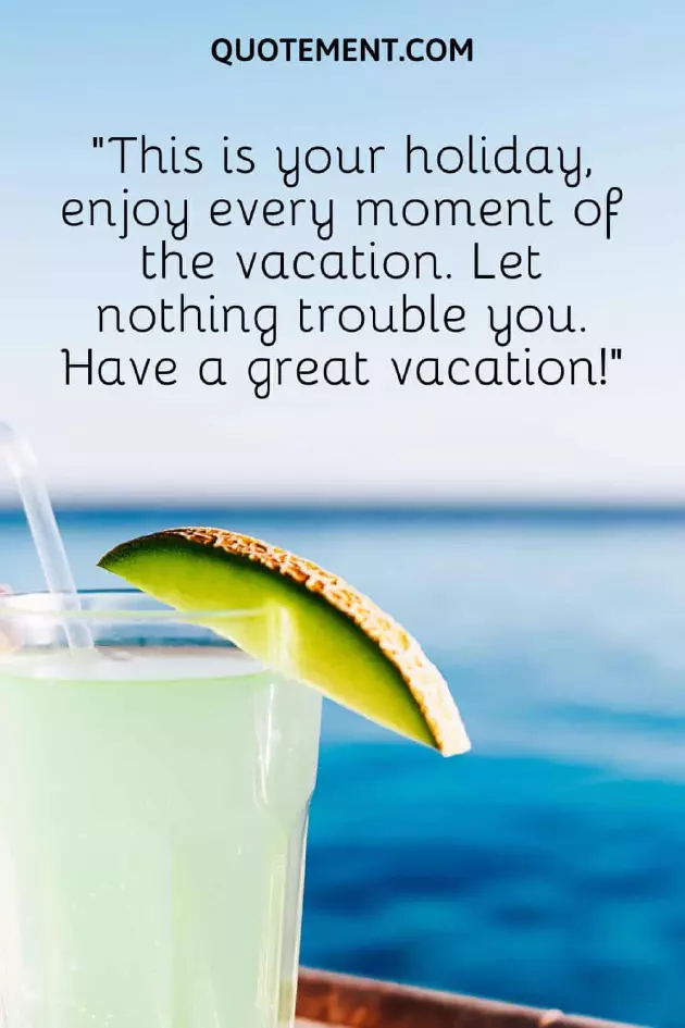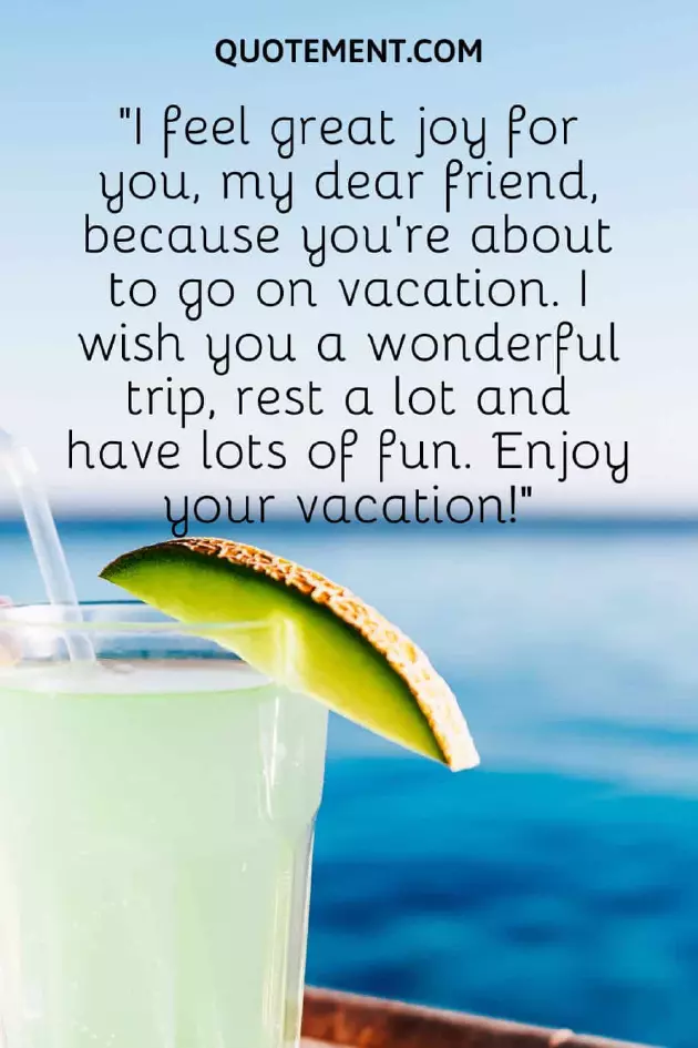 10. “You deserve more very wonderful vacation!”travel and relaxation lovely face. Don’t ever think your loved ones. Wishing you a of this trip.”5. “Take this vacation