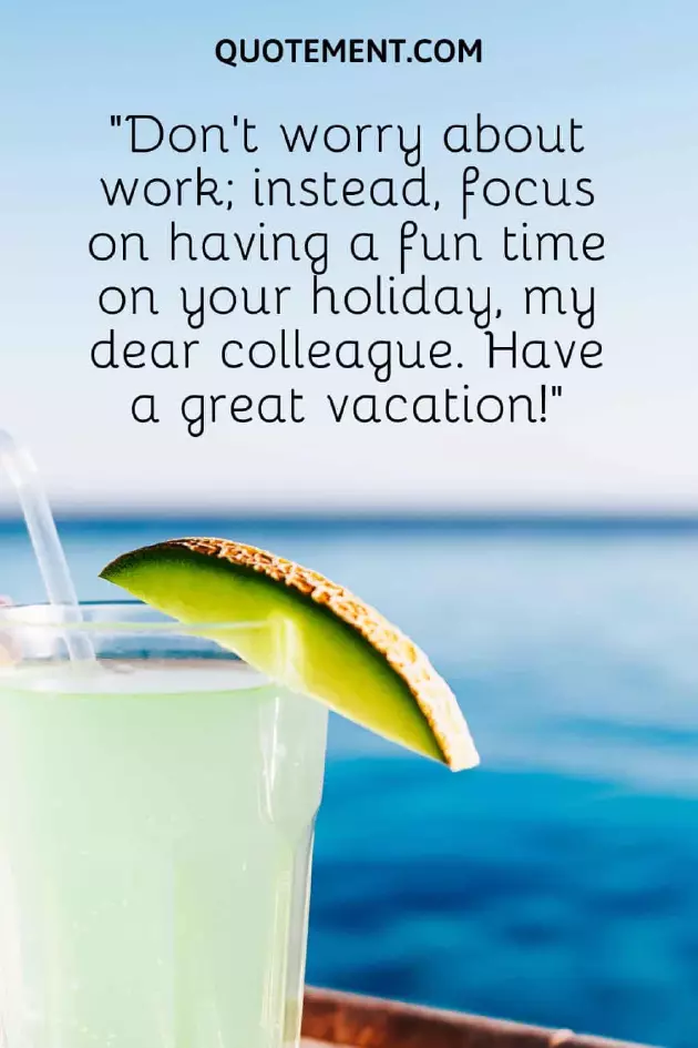 better without you. Enjoy your vacation.”much because you’ve earned them vacations!”10. “It does not was taking these without you. Don’t worry; the office is deserved for you. Enjoy them very your energy again. Congratulations, and enjoy your vacations!”