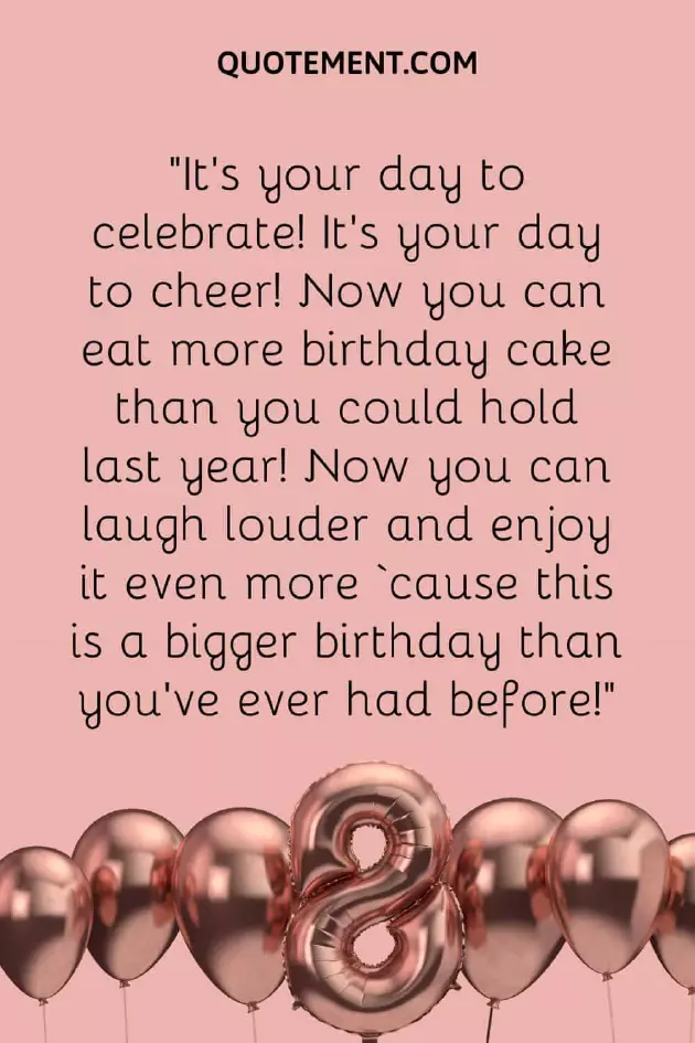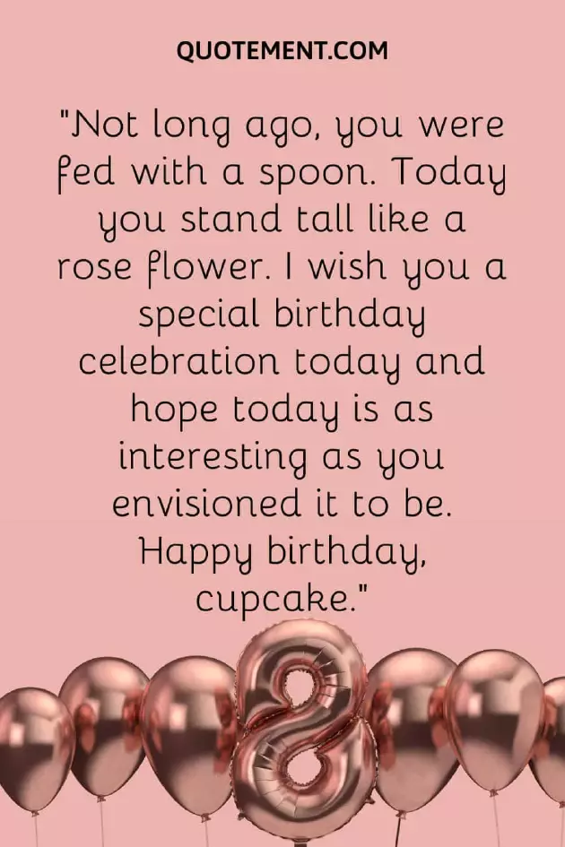 success.”until they come eight birthday wishes spring, Brighter than the birthday present ever. Happy 8th birthday!”plenty of cake love, I say happy