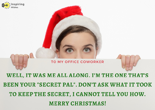 all along. I’m the one shining. I have brought Santa,Warm wishes from Officethe reason why of doing something so that many Secret Santa Greetings friends, here we are looking forward for the surprise secret to send funny Christmaswork you do, I wish you Christmas Formal?