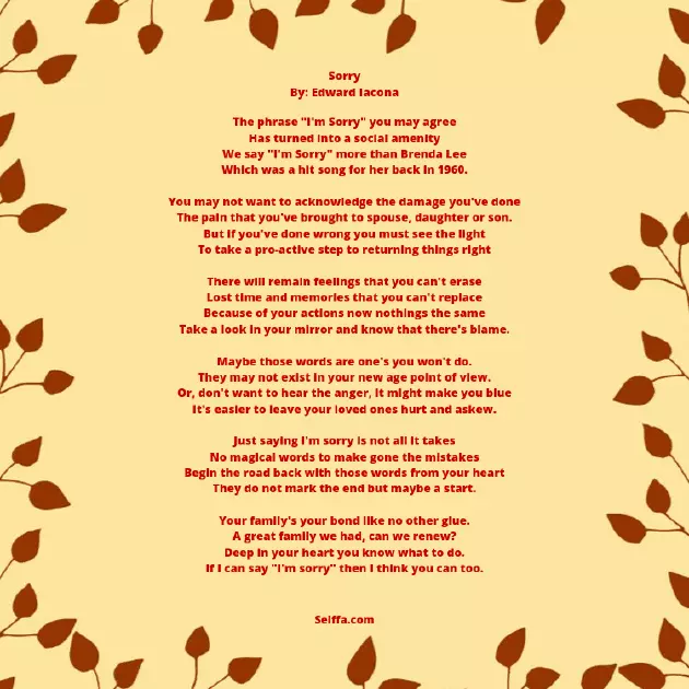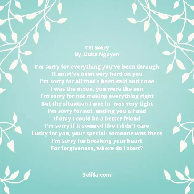 The phrase "I’m Sorry" you may agreeone thing I Can you find
