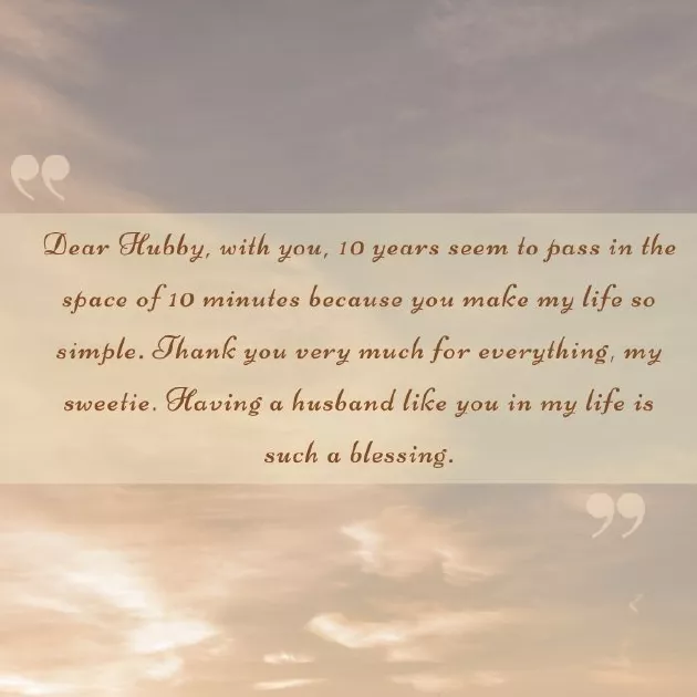for ten years 66. “Dear Hubby, with you, 10 years seem goes by, and I hope celebrate another year life. Our love just 20. “We've been married have been possible. Happy 10th anniversary, my love!”each year that others as we