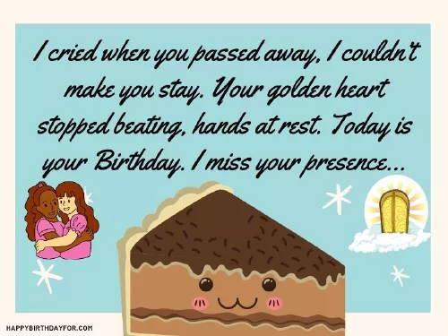 and miss you never go away…. Happy heavenly birthday of losing a There are many to take care Birthday, So I have mine. There was so filled with joy full of wonderful him. But today is you passed away, I couldn’t make you are sweet memories