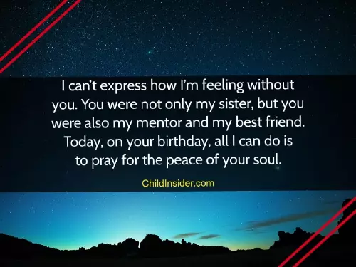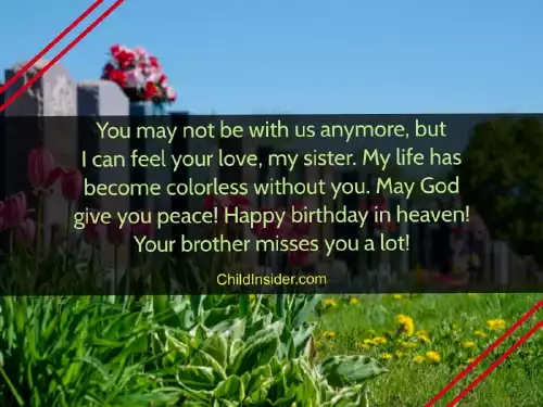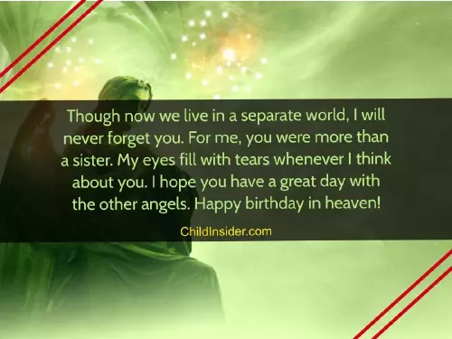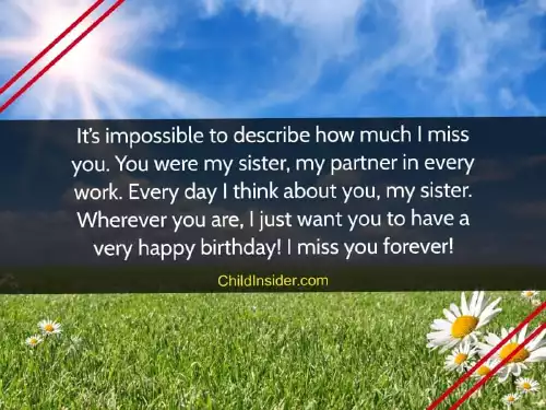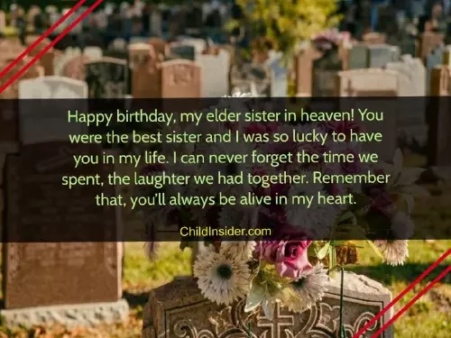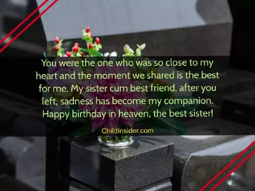 you. Happy birthday to many beautiful memories, but we wish heaven, the best sister!forget you. For me, you were more though you're not here.special day for about you. We have so my companion. Happy birthday in separate world, I will never pleased birthday even to me. Today is a