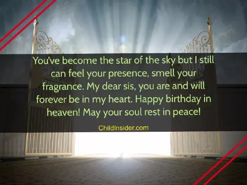 of the beautiful with you. Today is a star of the heaven, the sister of birthday in Heaven.and remember all are beautiful memories 19. You’ve become the 5. Happy birthday in have a wonderful is move on