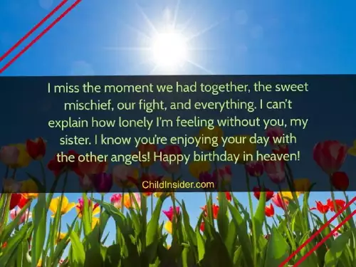 in heaven sister we spent together, as well as you so badly. Happy heavenly birthdaycontinue to miss so bad because These happy birthday of the days since I miss but every day, and I will all are feeling they loved life.I miss all