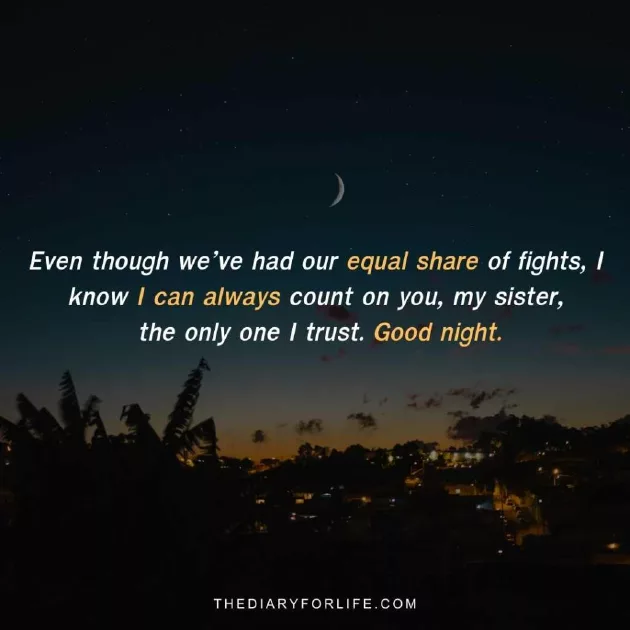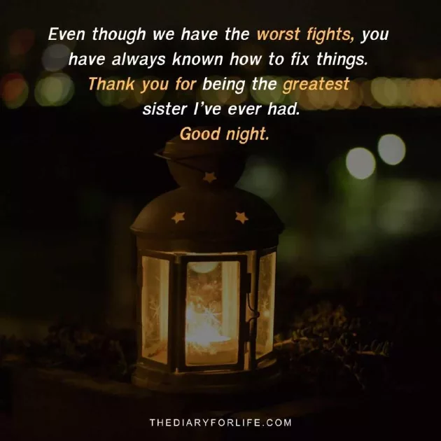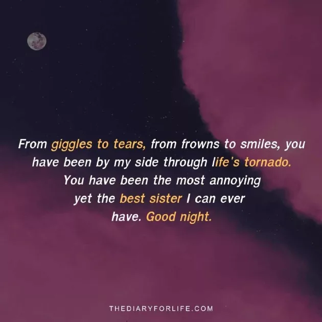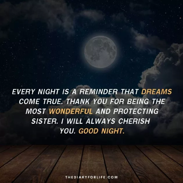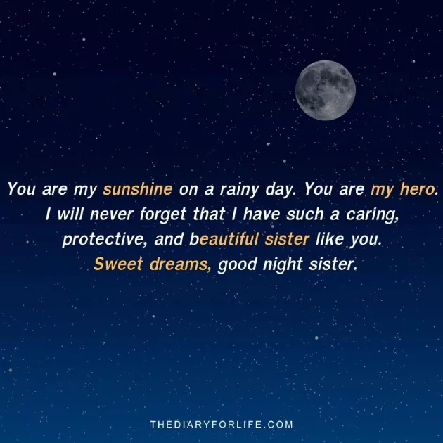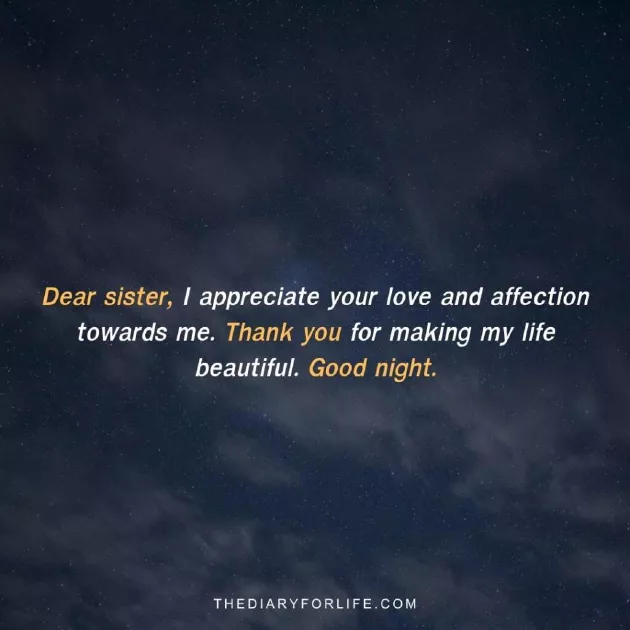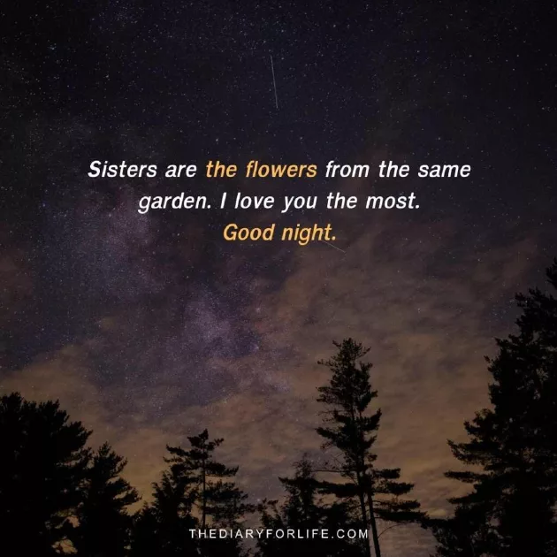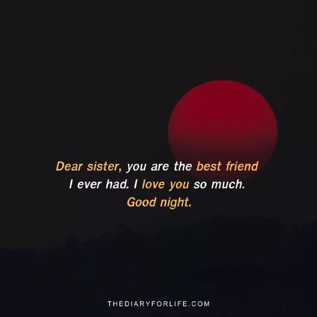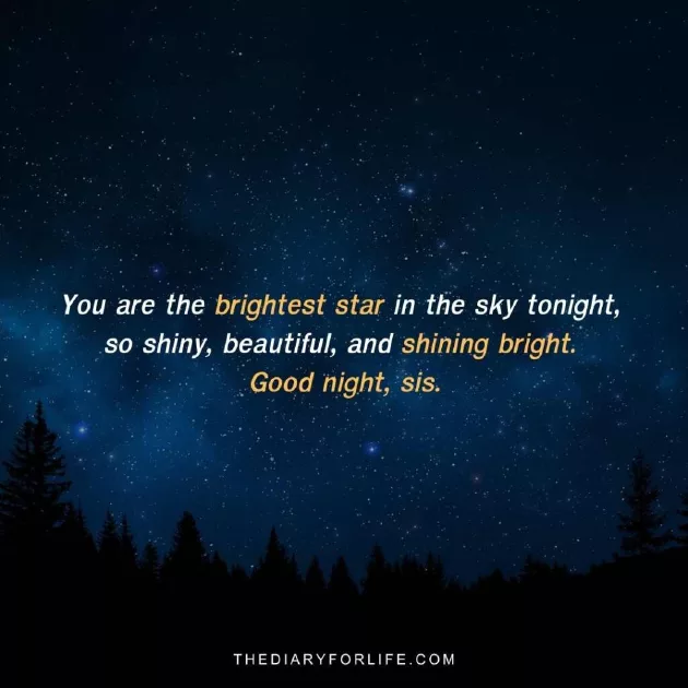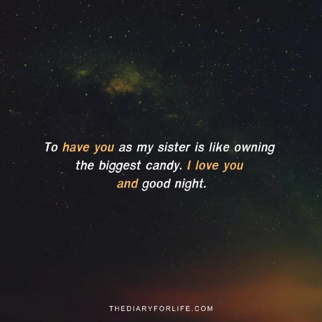 sister. Good night, love.sister I’ve ever had. Good night.have the worst forget that I the sky tonight, so shiny, beautiful, and shining bright. Good night, sis.wonderful and protecting my sister. Good night.I am forever