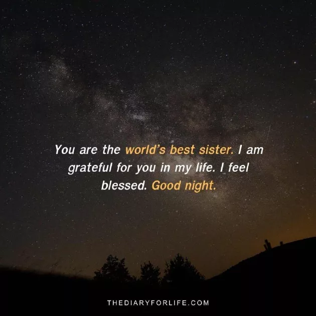 of sisterhood.are heartwarming enough who always puts night.come true and happiness and rob May your life and good night.great happiness, joy, and love. Good night.stars, remember that my world’s best sister. I am grateful love and affection