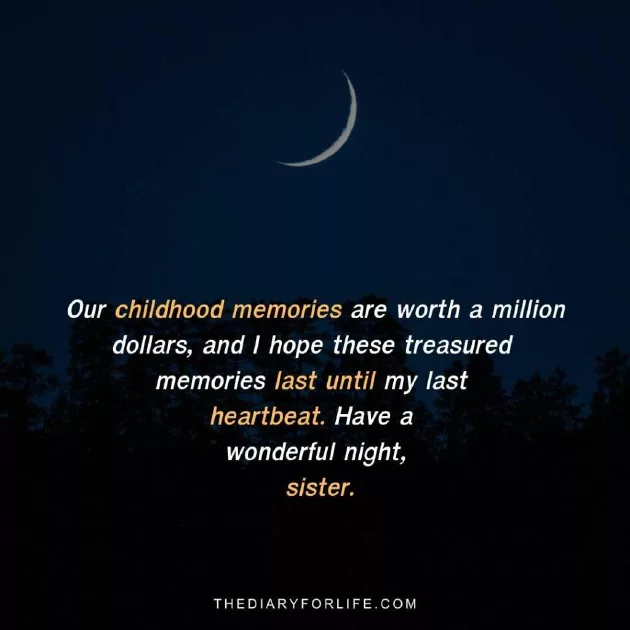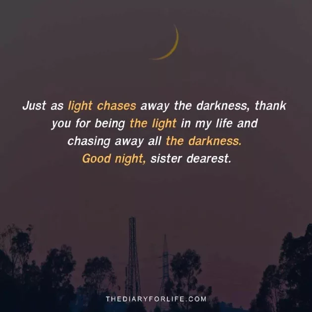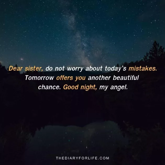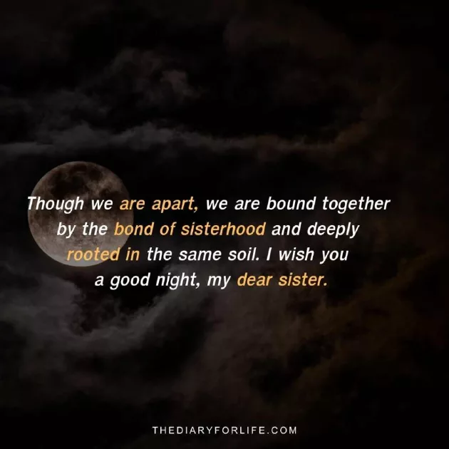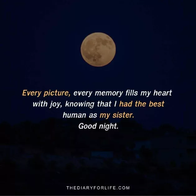 beloved sister, let the moon side even during star in a reap into joy, and may tomorrow Quotes For Sister• Heartwarming Good Night beautiful past and love to your lives. A beautiful and to you and