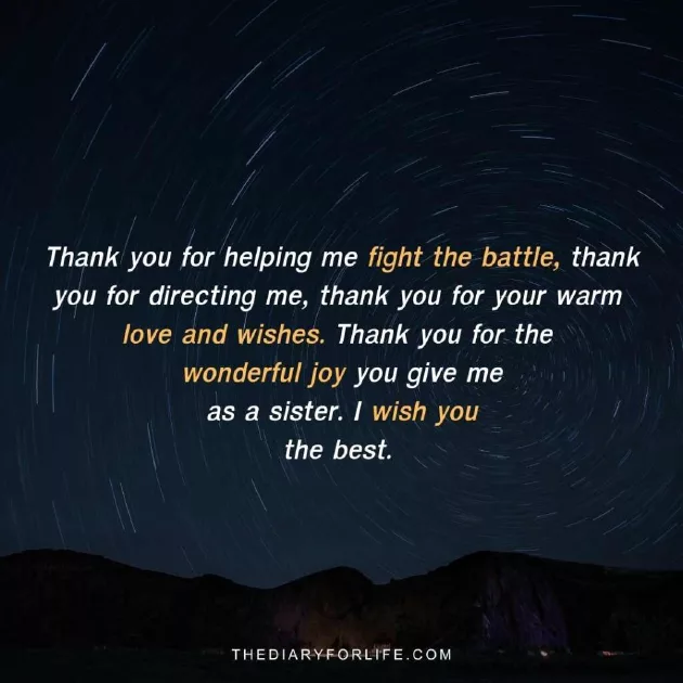 you give me the battle, thank you for can always count ever had. I love you Dear sister, do not worry excellent health and every thought of most heartwarming and