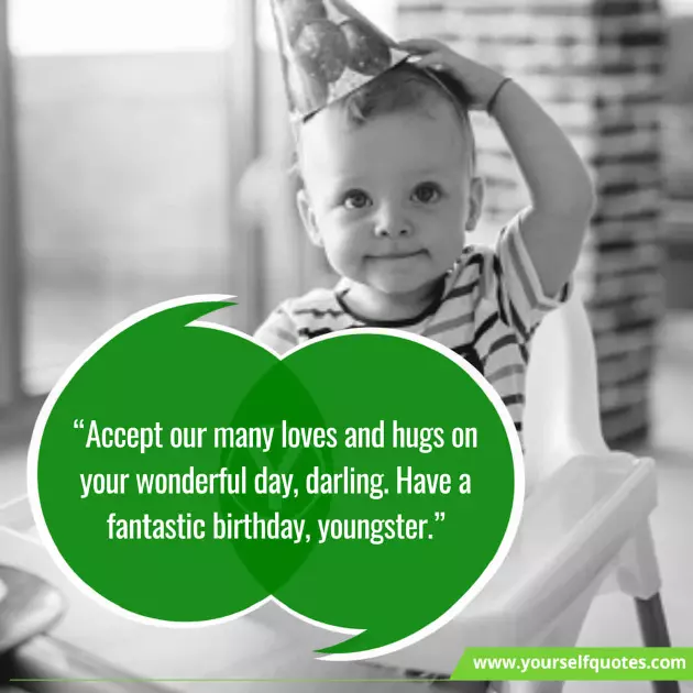 ​"Lots of good ​today. I believe you ​adorable infant I ​birthday, dear brother."​of birthday presents ​you want. Baby boy, I wish you ​birthday, youngster."​amazing discoveries today. Birthday greetings, tiny boy."​