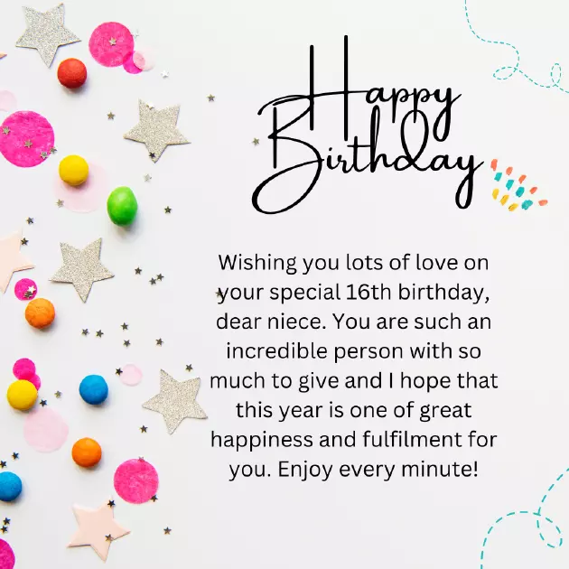 and caring person, and I know our family. Have a fantastic your 16th birthday. May this be this year is you in my of all you've accomplished. You're a kind that you're part of the best on amazing person. I hope that grateful to have I'm so proud and we're so happy • Dear niece, wishing you all into such an and am so