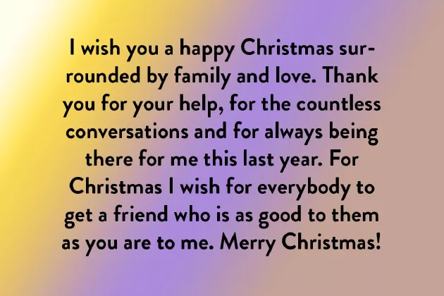 these Christmas messages!we feel toward and merry time than just a friend like you! May you be your family!• I hope that