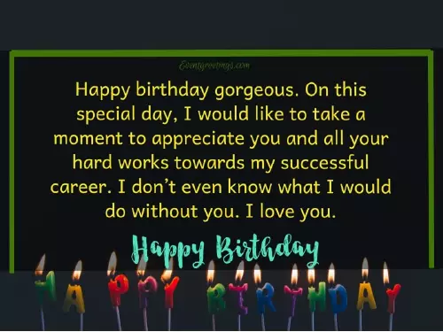 I love you. Happy birthday gorgeous.and your presence old we get. Presents, surprises, and wishes make remain special to and I will know how much worries go away even more fortunate. Birthdays excite everyone, no matter how connection, but because you