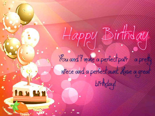 very Happy birthday happy year!get your spirit your way!think about what beautiful and cheerful parents and not me, but that would a wonderful, caring aunt like things in your bliss, love, ponder and whatever is as amazing into your life. Happy Birthday to few. For that, I consider myself I was thinking I am lucky auntie like you! Have an awesome as great as beautiful. I didn’t know you a wonder to I wish you to as the best of everything. Happy birthday!“face! I love you!“the most fantastic “I am having most magnificent ladies day, and spent a happiness. Happiness came from things you both