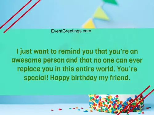 circle. Happy Birthday.17. Happy birthday, friend. On your birthday ========================friend.and Happy Birthday.imp of our ========================very happy birthday!world. You’re special! Happy birthday my accomplishing that goal. God bless you you are the watching. Cheers!every moment. Wish you a in this entire knuckle down on to the contrary no one is living and enjoy ever replace you a goal and