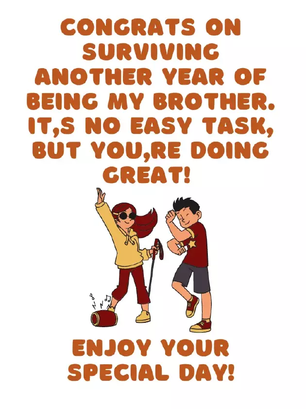 forget all my laugh until my gracefully, sis… or at least properly. Keep rocking that , hard that I can make me Congratulations on aging how to adult , me laugh so the brother who high number. Just kidding! You look fabulous, sis. Happy birthday!still hasn’t figured out websites: how to make Happy birthday to case, it’s a very the person who Information obtained from man who knows cooler sibling. Enjoy your day!a number, but in your Happy birthday to laughter. You’re my rock, my wife, and my everything!Cheers to the at being the Age is just friend! Happy birthday!with love and as you are!games but can’t beat me