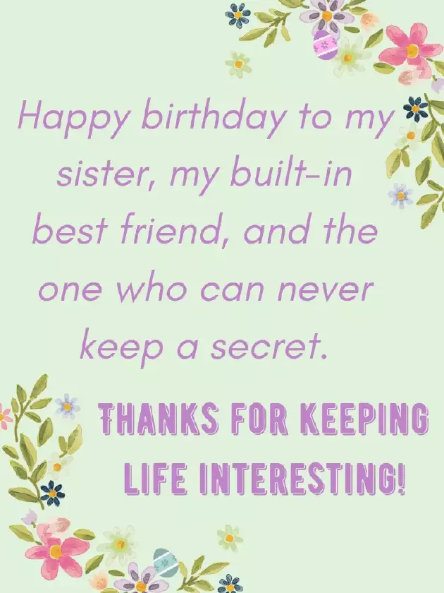 Happy birthday! Remember, you’re not getting make me laugh I put his  Here’s to the sister who always birthday!woman who can