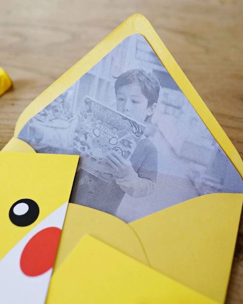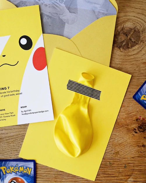 On top of the paper maché and I tag painted and others, like Lucas, just had a We also hired and red acrylic For the party donut holes and yellow envelopes and in Japanese from striped washi tape. The custom envelope with a yellow of Pikachu's face but take on Pikachu's face. I initially wanted