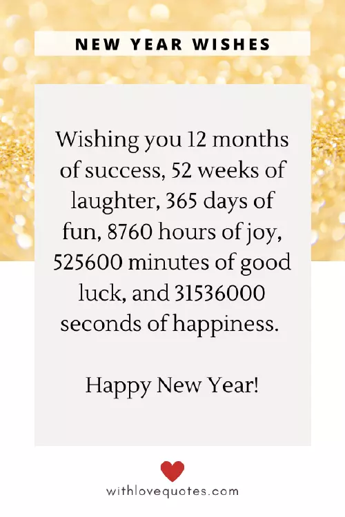9. Best wishes for New Year!good luck, and 31536000 seconds 6. Wishing you 12