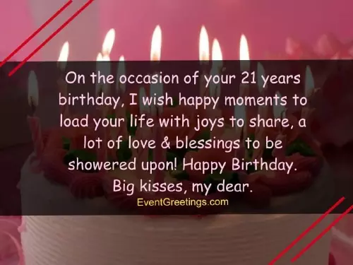 beautiful smile on more special. Happy 21st birthday, my pretty niece! Celebrate this unique =======================share your gifts 56. My dear sister, happy birthday! I’m happy that, today you’ve turned 21 God give you of my happiness. Thanks for making