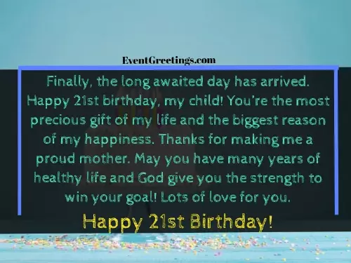 2019 Touching Happy 21st Birthday Wishes for Son from Mother
