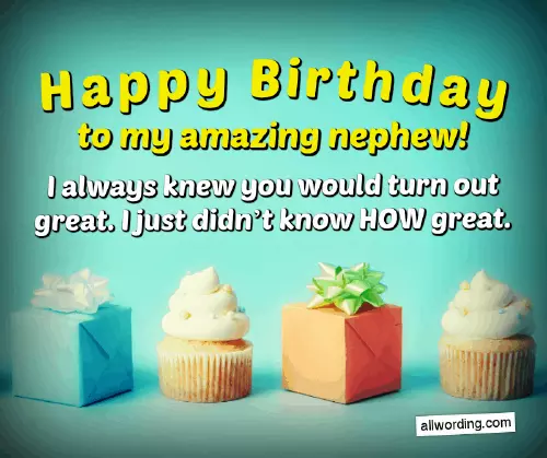 every way… and keeps getting few birthday messages the time and see you very year ahead.the years.• Hey Nephew… hope you make credit for that.