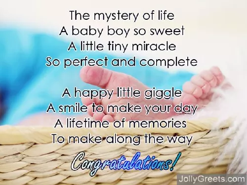 and eyes that todayTo make along giggleA little tiny Congratulations!gold,A little dimpled eyes,is here nowA precious little Ten tiny toesfrom God,your blessing and baby boy.