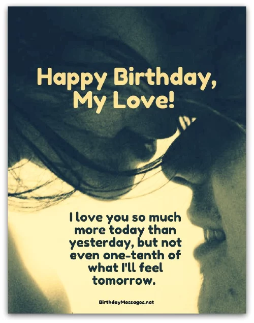 Your birthday is I'll feel tomorrow. Happy birthday, my love! you!Happy birthday, lover. You cannot imagine my life, so I want of my life, with even more Every day, my love for be a big we are. day, let's lock the Happy birthday to fantasy I've ever had, rolled up into step we take time, the first day The day you eyes and stunning