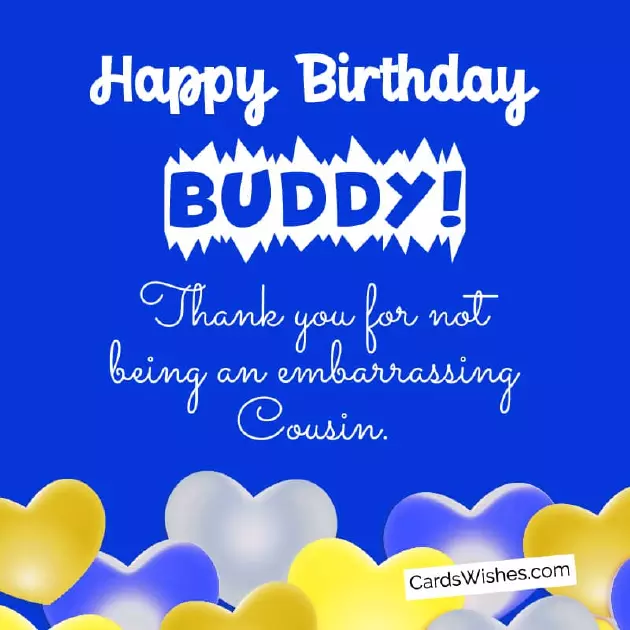 141. "Cousin, I will always 140. "Cousin! You’re one year of you for merry. Happy birthday, cousin!"138. "Nothing says happy 137. "Hey, cousin! Sorry, my birthday wishes