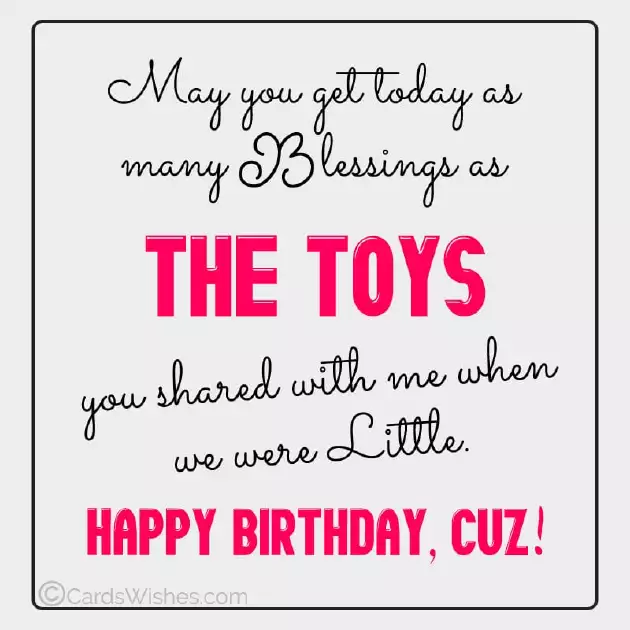 grandkids, I’ll have so paid up. Happy birthday! Seriously – I mean it."146. "Cousin, on your birthday, I just want 145. "Cousin, we’ve shared so your birthday wishes 143. "Here’s to a secrets. Happy birthday!"