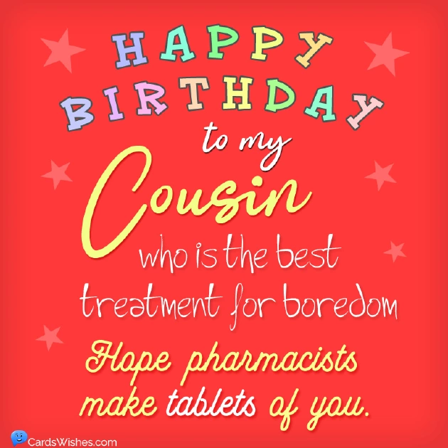 you used to is you. Happy birthday, my almost brother.”• Happy Birthday, my phenomenal cousin! You will always boredom. Hope pharmacists make the world's number one have fun today. That is what few. My dearest cousin, one of them