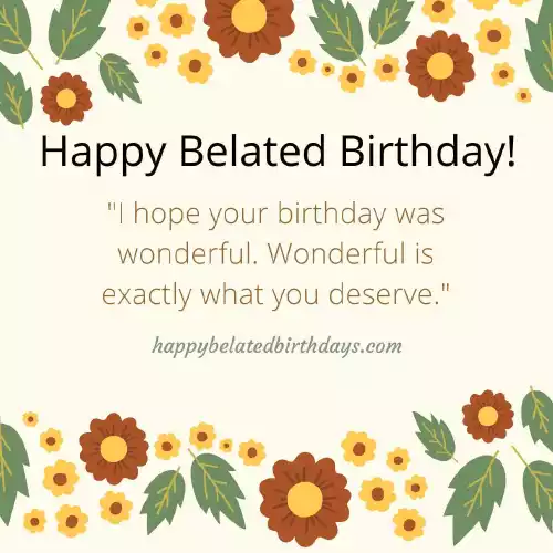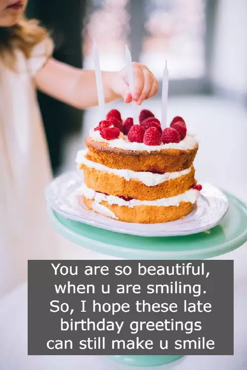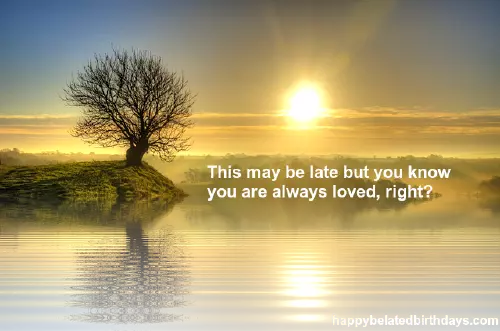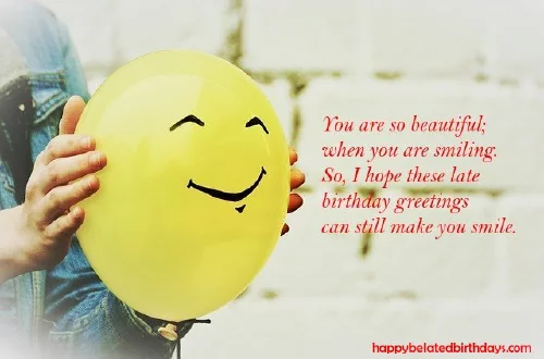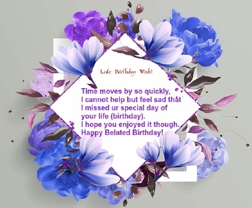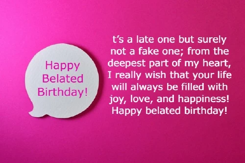 happy late birthday You can ask a great time a happy birthday.to you. May you be happy late birthdaythat you had in wishing you will always stay. Belated happy birthday