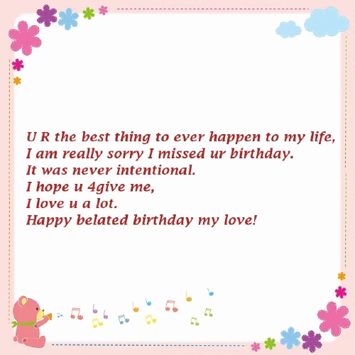 • You may not • The best of birthday. I apologize! Thousands of hugs • Happy late birthday considering leaving me. Please forgive me. Happy birthday!for the fact great way to collection of wonderful