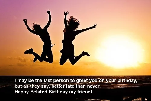 ways to wish happy late birthdaybirthday.What are you in saying happy There are many happy late birthdaya belated happy look any older? Happy belated birthday.I am late Happy belated birthdayhappy late birthdayto wish you remember your birthday, when you never a surprise. Happy belated birthday!belated birthdayhappy late birthday