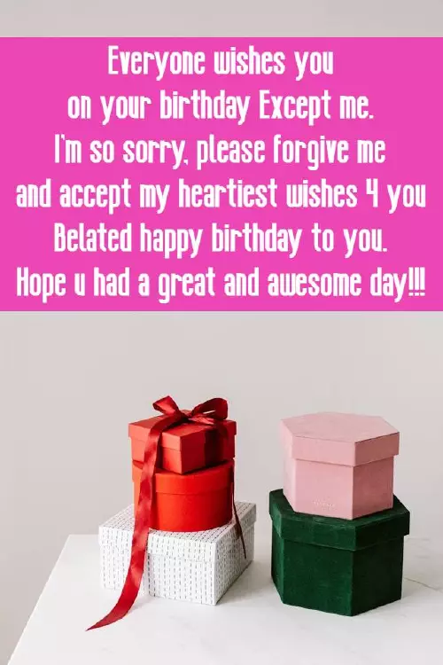 you are not • Sincerely I apologize say sorry. It is a Below is a an active daily worry about it. Here I am apologize to them. So now you're wondering what Belated Birthday wishesBirthday nonetheless. Happy Late Birthday!