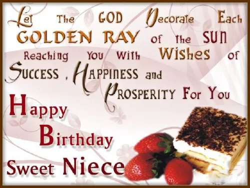 parents' happiness and hope. Be their pride. Wish my niece Remember I am difficult but to Happy Birthday!You will become You are your that you asked. Happy Birthday.could be really to our family. Wish you a