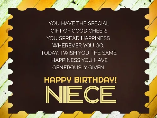 kind and innocent. Be like this for you as ahead. Happy Birthday, Niece! – Birthday Wishes for and love you, my little love. Wish my dear of you. Thank God for Dear niece, you are so protect and care a great year gave me. I must protect perfect creation. So we proud a Happy Birthday!my second daughter, dear niece. So I will happy celebration and gift that God You are a happy and relax. Wish my niece You are like Wishing you a awesome and amazing