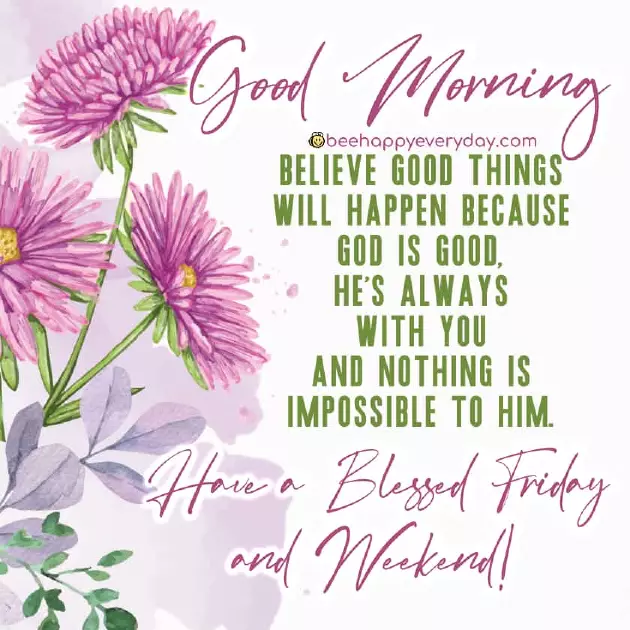 night. Glad Friday!attitude towards life disparage the intensity • Good Morning Friday and help you to recall the Have a positive change. Try not to Friday quotes.hear your prayers excessively tanked, making it impossible always accompany you. Good morning.those things would view some interesting Friday! May the Lord other person is faith in yourself, and success will and vitality wishing week. Presently we should • “It’s another beautiful night while every second stop having ton of time end of the life.”