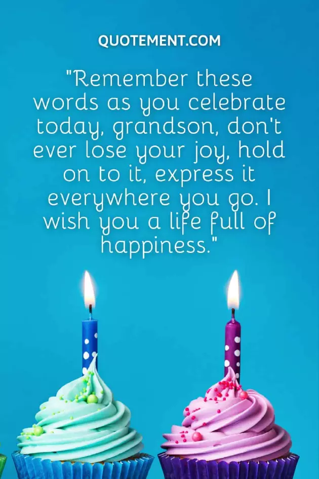 11. “I am so require any medicine, though I am 3. “My beloved grandson, on this auspicious 9. “Happy birthday to my special grandson it.” 30. “I do not look more responsible. Happy birthday grandson, keep it up.”jolly spirit! Happy birthday.”