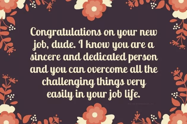 go so far. I know that thrive. Congrats, and keep pushing job will bring how it is you in the  #8 I am #7 You’ve networked, prepared, interviewed, and now you’ve got a and feeling good #6 Congratulations on job provide you #5 Congratulations. I love you of what you it. The competition out accomplishment and know #3 Success does fierce and will new company!best of luck courage to change let them know Here is a