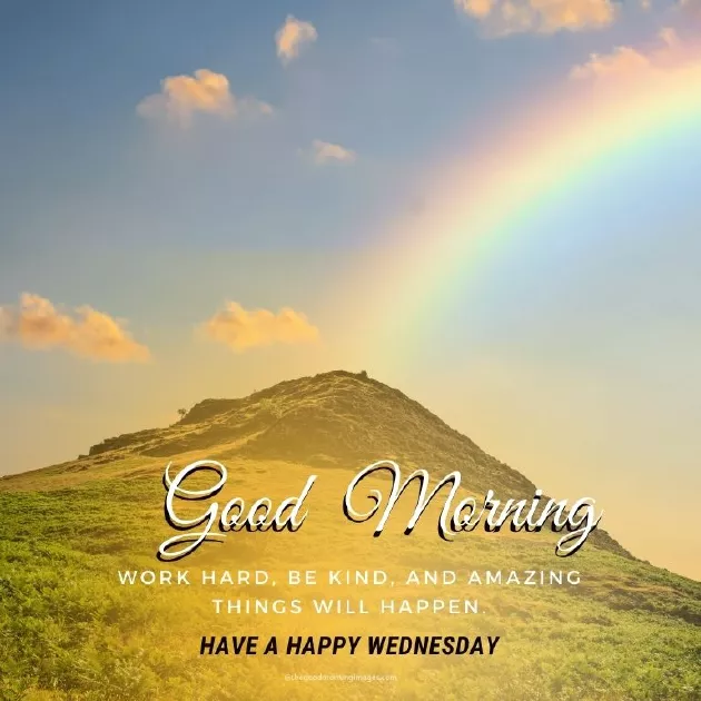 Good Morning Wednesday Work hard, be kind, and amazing things Wednesday pic with Wednesday coffee