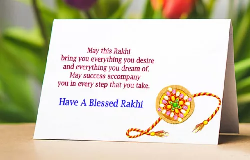 for your sister. Happy Raksha Bandhan.Never ever thought we will not be together this day. I am really missing you very much. The Rakhi you send is very good, it's looking great on my wrist.