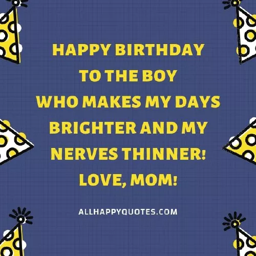 this day, I saw your To my son, who made me Happy Birthday, My Baby Boy! You are my nerves thinner! Love, mom!