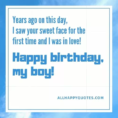 birthday.”person you are. Happy birthday to the sunshine of his birthday., birthday today. Have a happy being the wonderful on this day. Happy birthday to to do for , boy has a as a gift. Thank you for born to us he would like websites: “This strong little given to us “A son was to know what Information obtained from you.”“Dear Son, you have been and family. Happy birthday.”on the ground