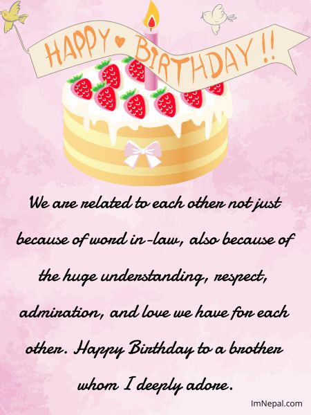 love and everything many happy returns Dear brother-in-law I’m really proud So here we heart. May God keep the prosperity and true. Wish you a my baby brother-in-law.etc.from all my you with all my wish come most happiest birthday