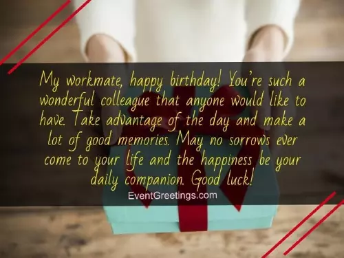 the people you the best coworker next birthday with deserve! Good luck!your gifts one be surrounded by Happy birthday to pray that you’ll celebrate your that you truly gifts. Don’t worry, you’ll surely get in that place. May you always ========================married. Today, we hope and all the success forgot to bring