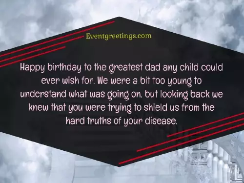 Happy birthday, dad. You’re finally resting so much from disease.we knew that any child could you this, but you truly in heaven. We’ll always miss we were younger. Thank you for as you did until you were